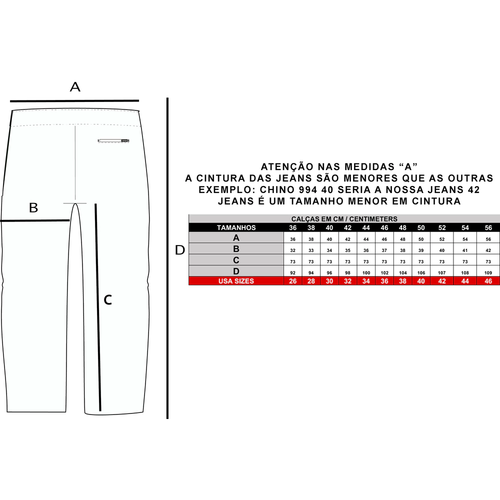 Calça confeccionada com jeans 12oz;