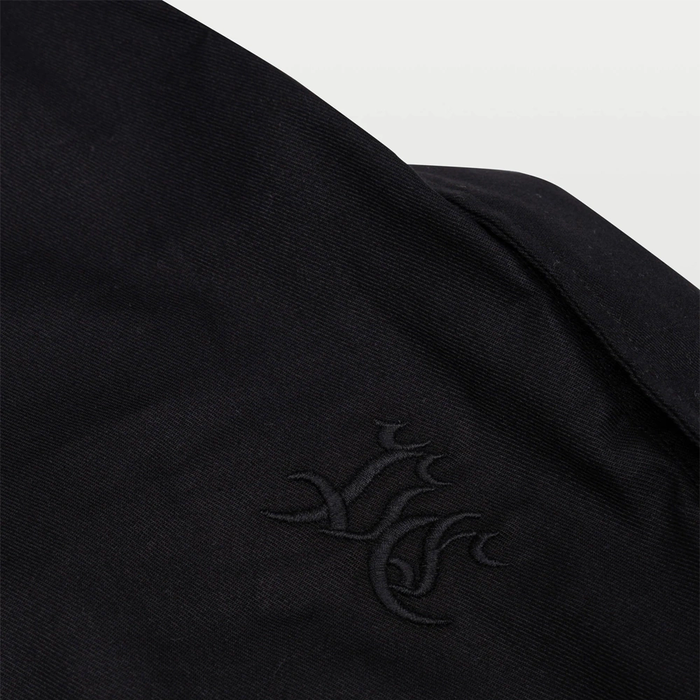 Bordado localizado em cima do bolso, altura do peito esquerdo;