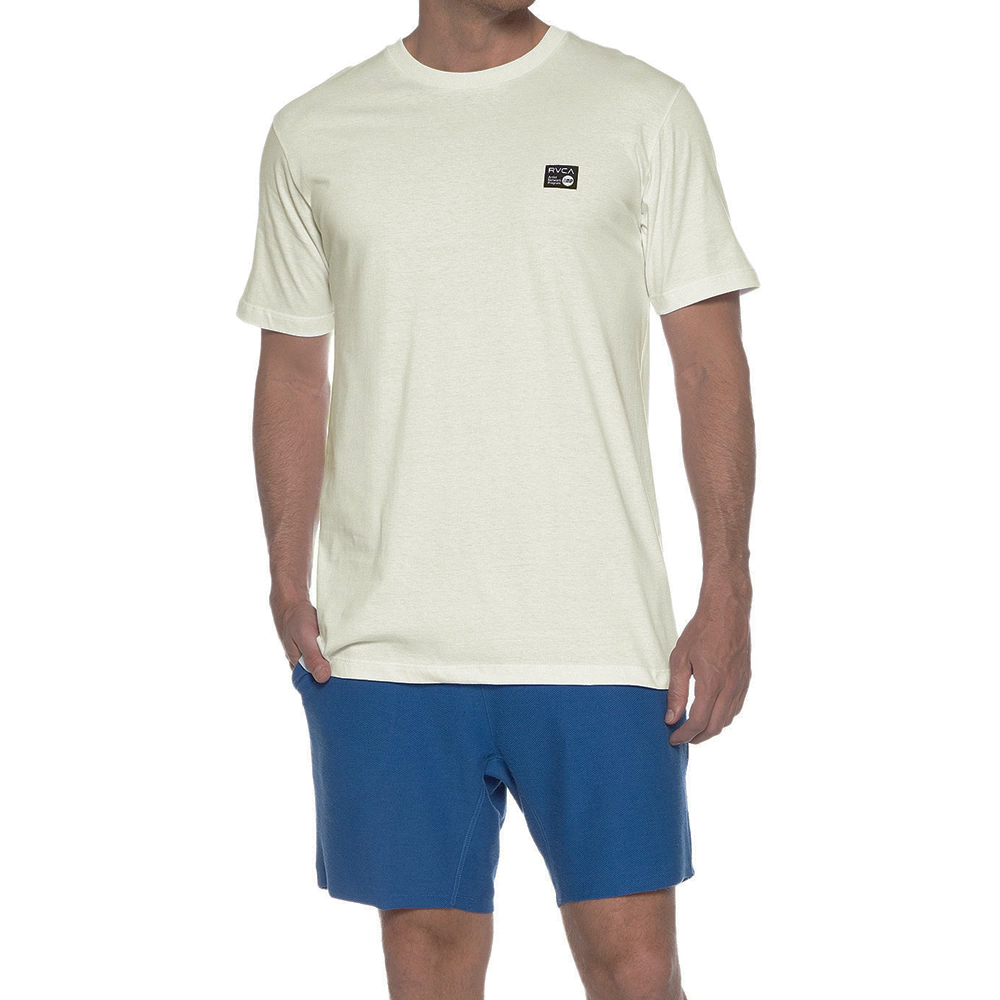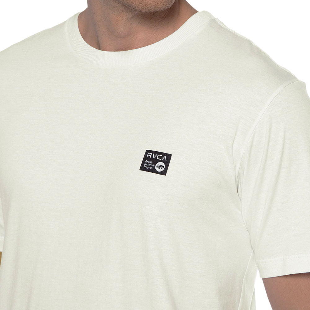 Camiseta Anp Label da marca de skate RVCA na cor off white é confeccionada em malha de algodão.