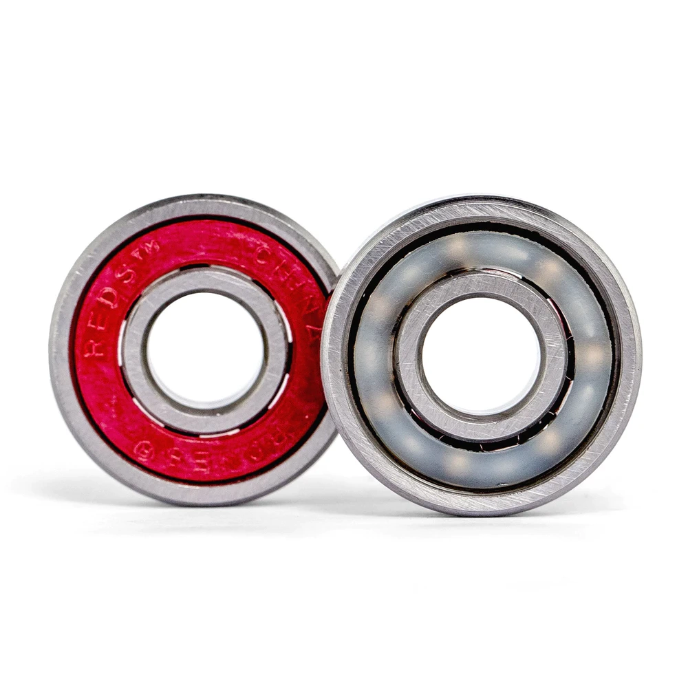 Os rolamentos Bones® REDS® são fabricados na China levando em consideração a performance padrão e as especificações da Bones Skate Rated™ em uma fábrica dedicada a produzir os rolamentos de skate de maior qualidade da China. Eles são inspecionados duas vezes antes de serem exportados e oferecem a maior combinação de performance, durabilidade e custo da indústria. Pelo fato deles oferecerem quase a mesma performance que o Bones Swiss, mas com apenas uma fração do custo, eles se tornaram o rolamento mais vendido.